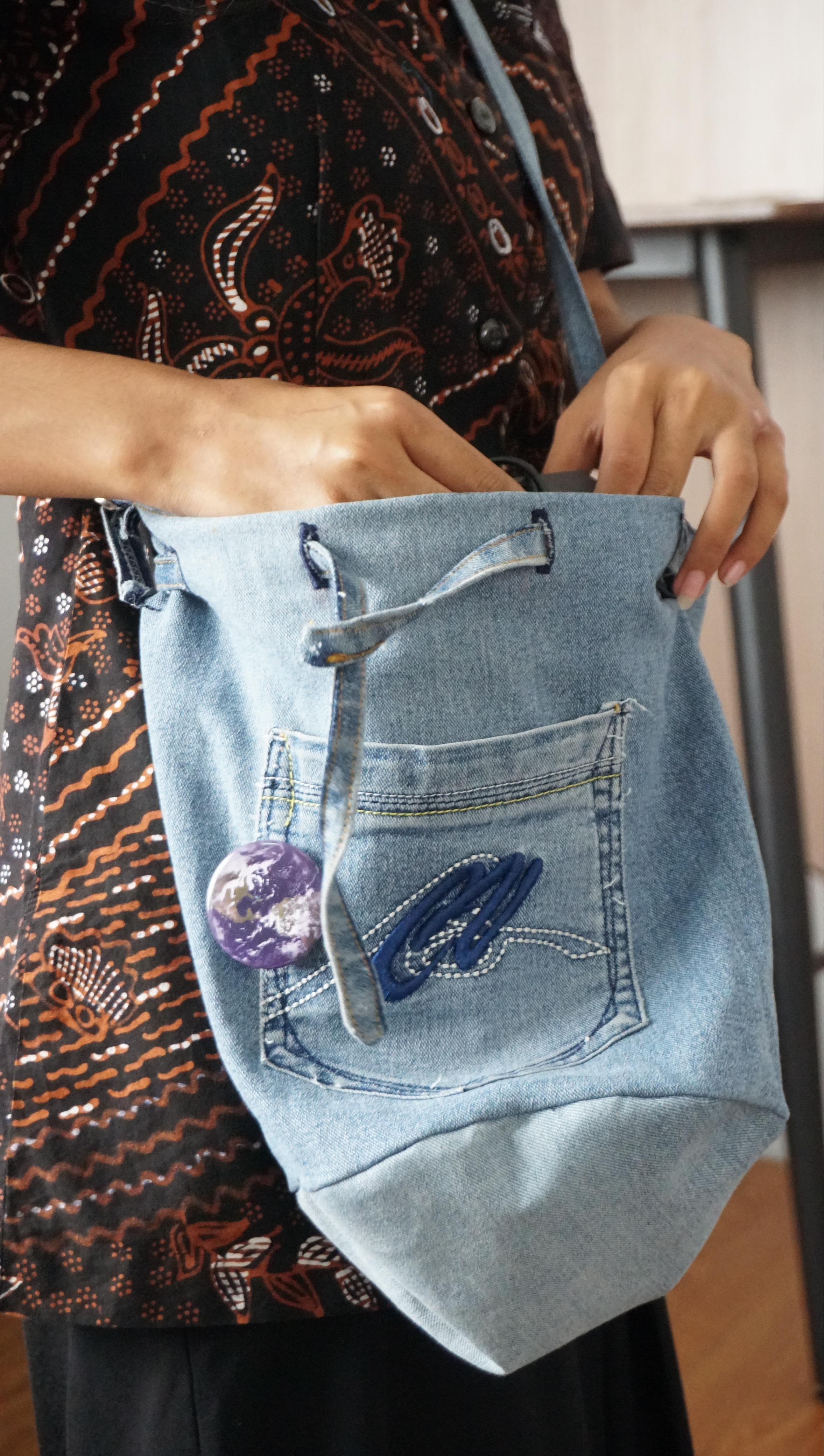 Every piece tells a story. Detail Produk: 1. Model: Bucket Bag 2. Ukuran: Medium 3. Material: denim upcycled 🎁 BONUS: Setiap pembelian dapat 1 pin random gratis dari ULANGIN